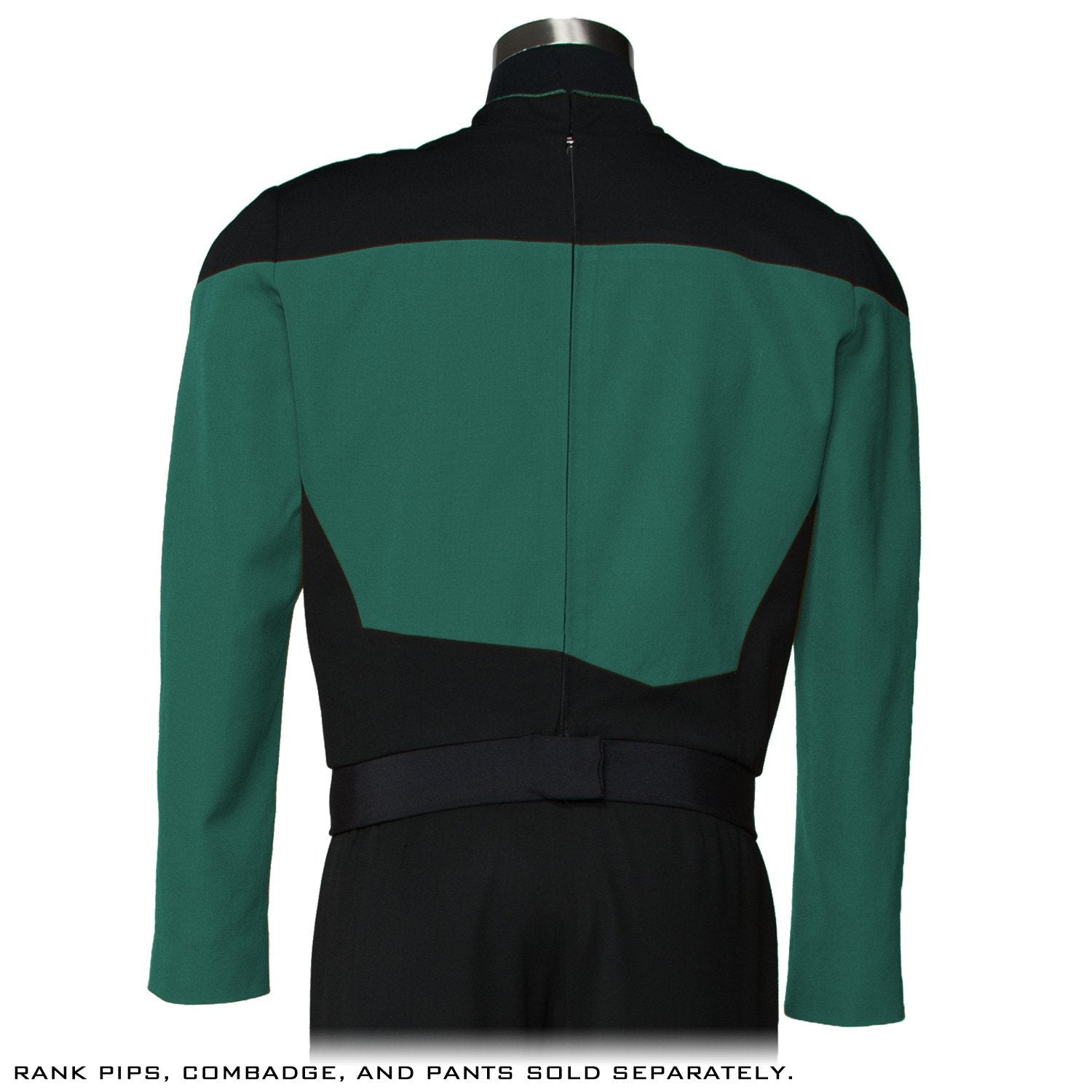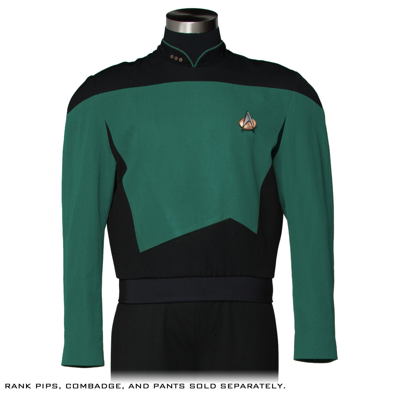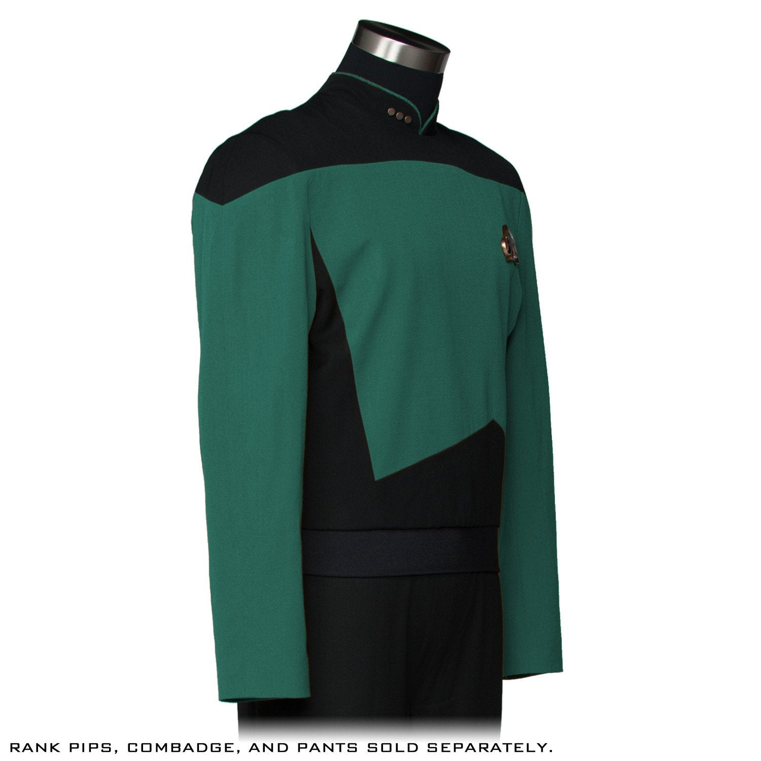 In celebration of this milestone, ANOVOS is humbled to offer the Premier Line Star Trek: The Next Generation Sciences Green/Teal Uniform Tunic, admittedly the rarer of the tunics worn in the TNG-era series, outside of a few singular instances: Picard in TNG's "Tapestry" and Dr. Julian Bashir in DS9's series premiere, "Emissary". Due to wide variations in dye lots from this era, we've settled on utilizing later TNG-era colors (as seen in TNG / DS9 and Voyager), and thus this item is more of a "green teal" than the "blue teal" of the early TNG era.