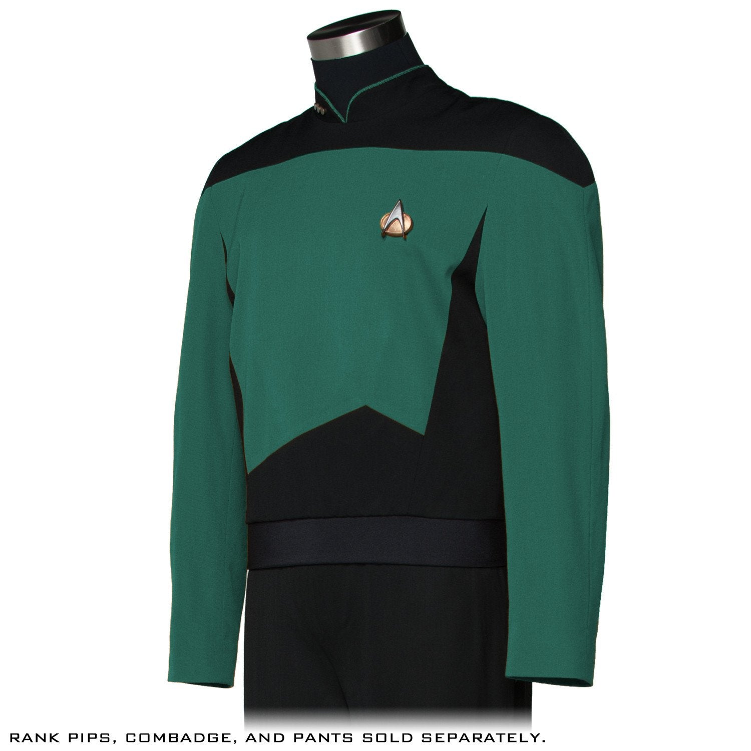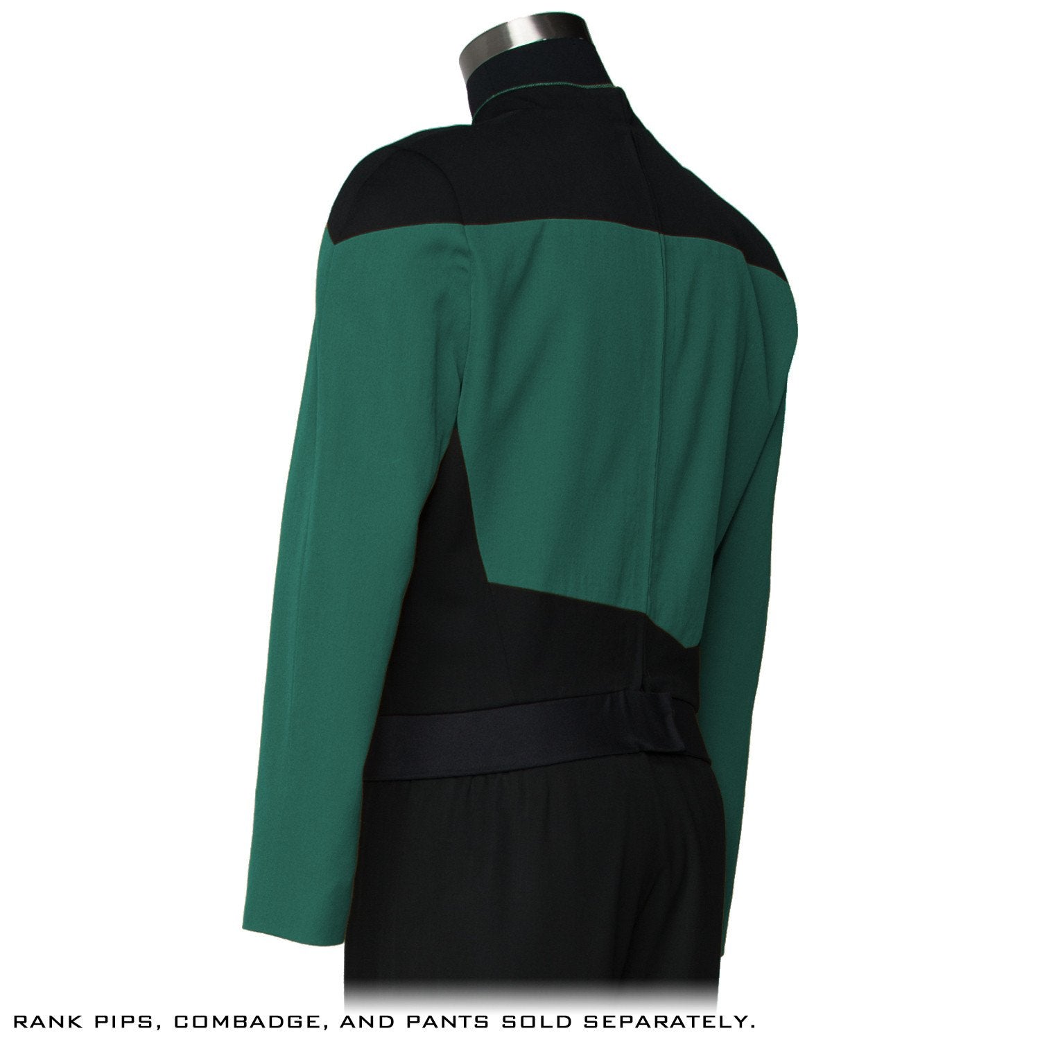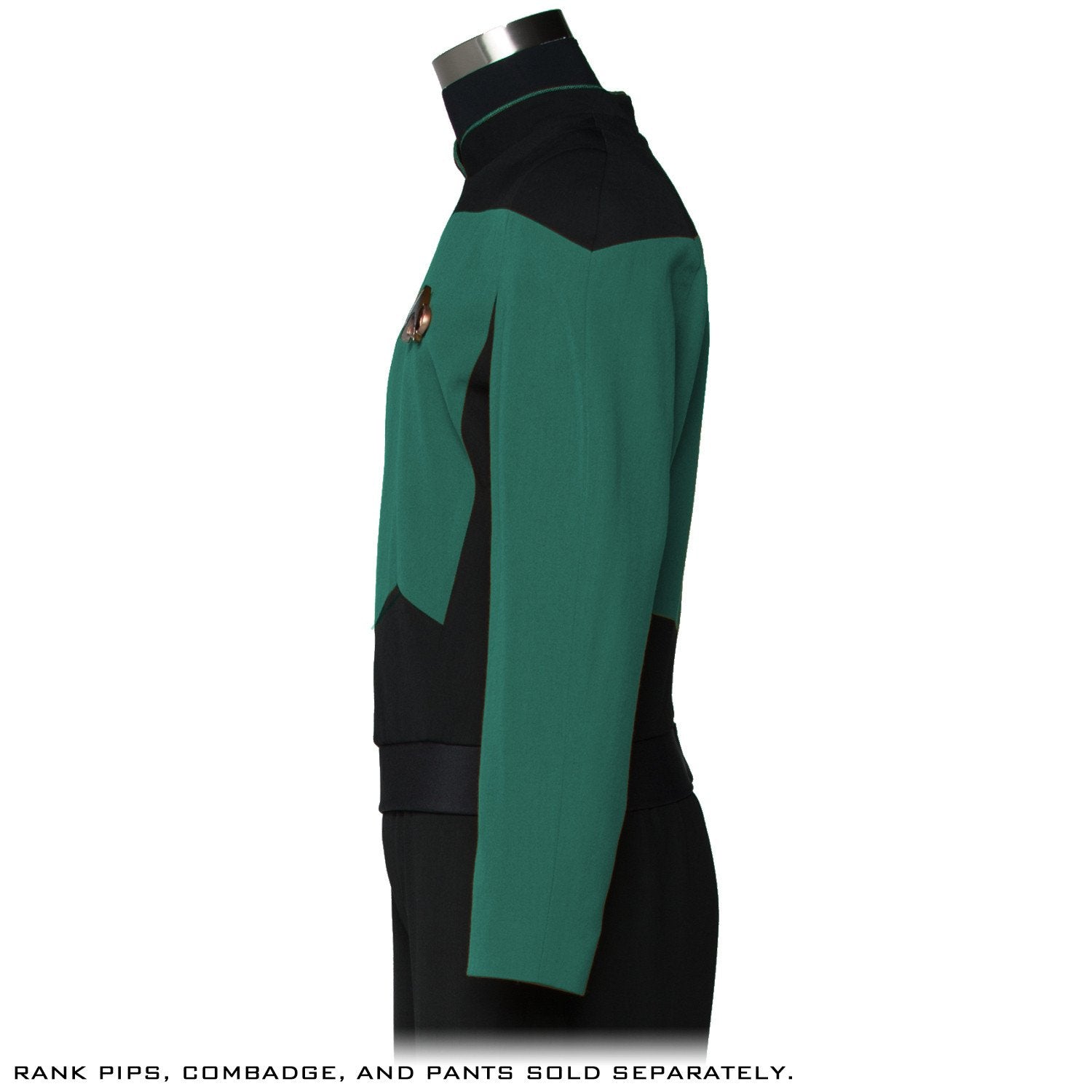 In celebration of this milestone, ANOVOS is humbled to offer the Premier Line Star Trek: The Next Generation Sciences Green/Teal Uniform Tunic, admittedly the rarer of the tunics worn in the TNG-era series, outside of a few singular instances: Picard in TNG's "Tapestry" and Dr. Julian Bashir in DS9's series premiere, "Emissary". Due to wide variations in dye lots from this era, we've settled on utilizing later TNG-era colors (as seen in TNG / DS9 and Voyager), and thus this item is more of a "green teal" than the "blue teal" of the early TNG era.