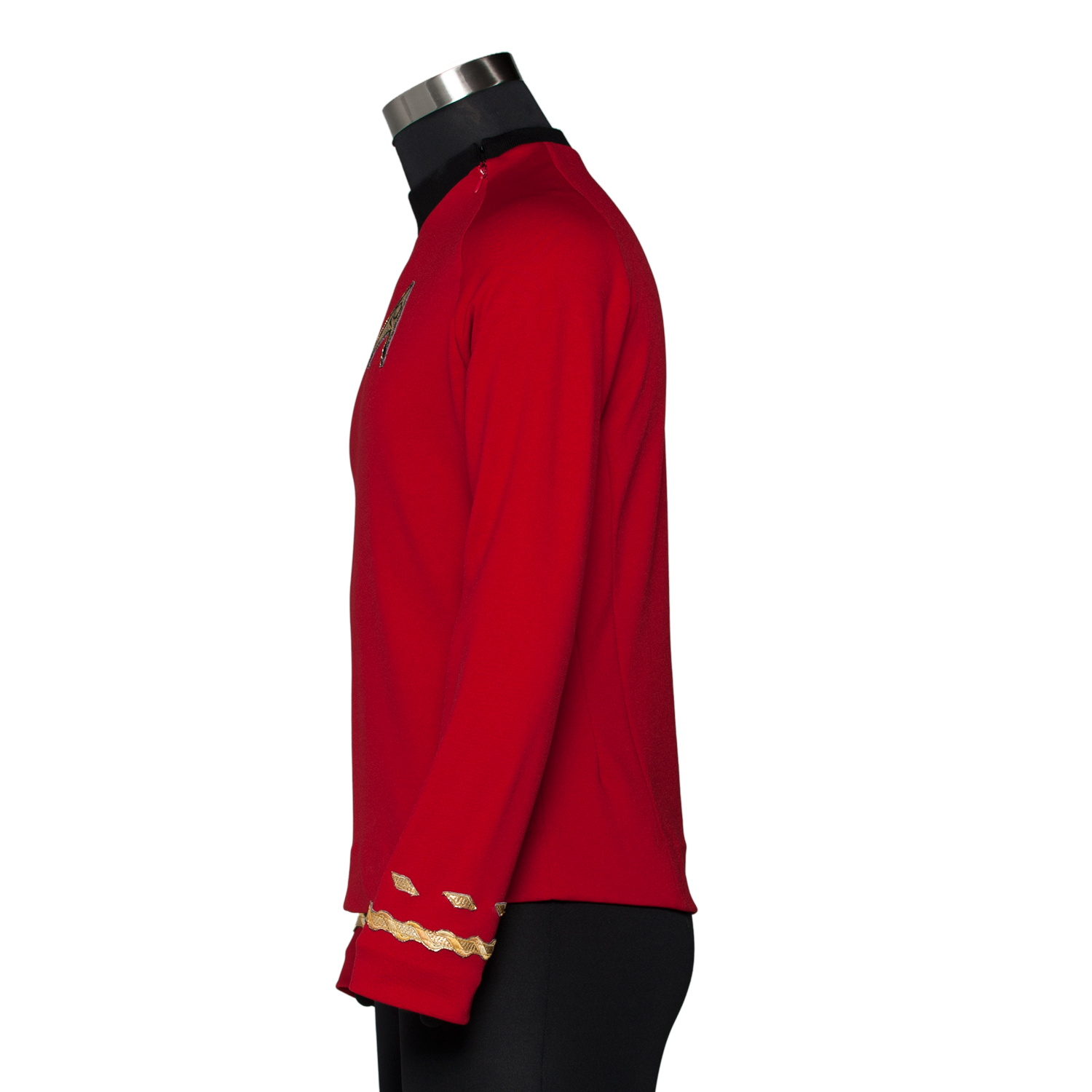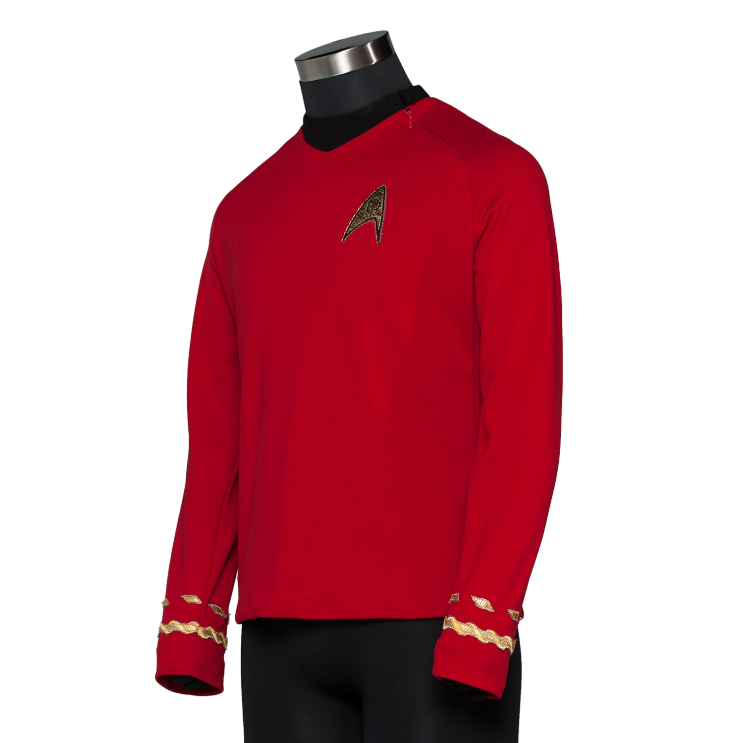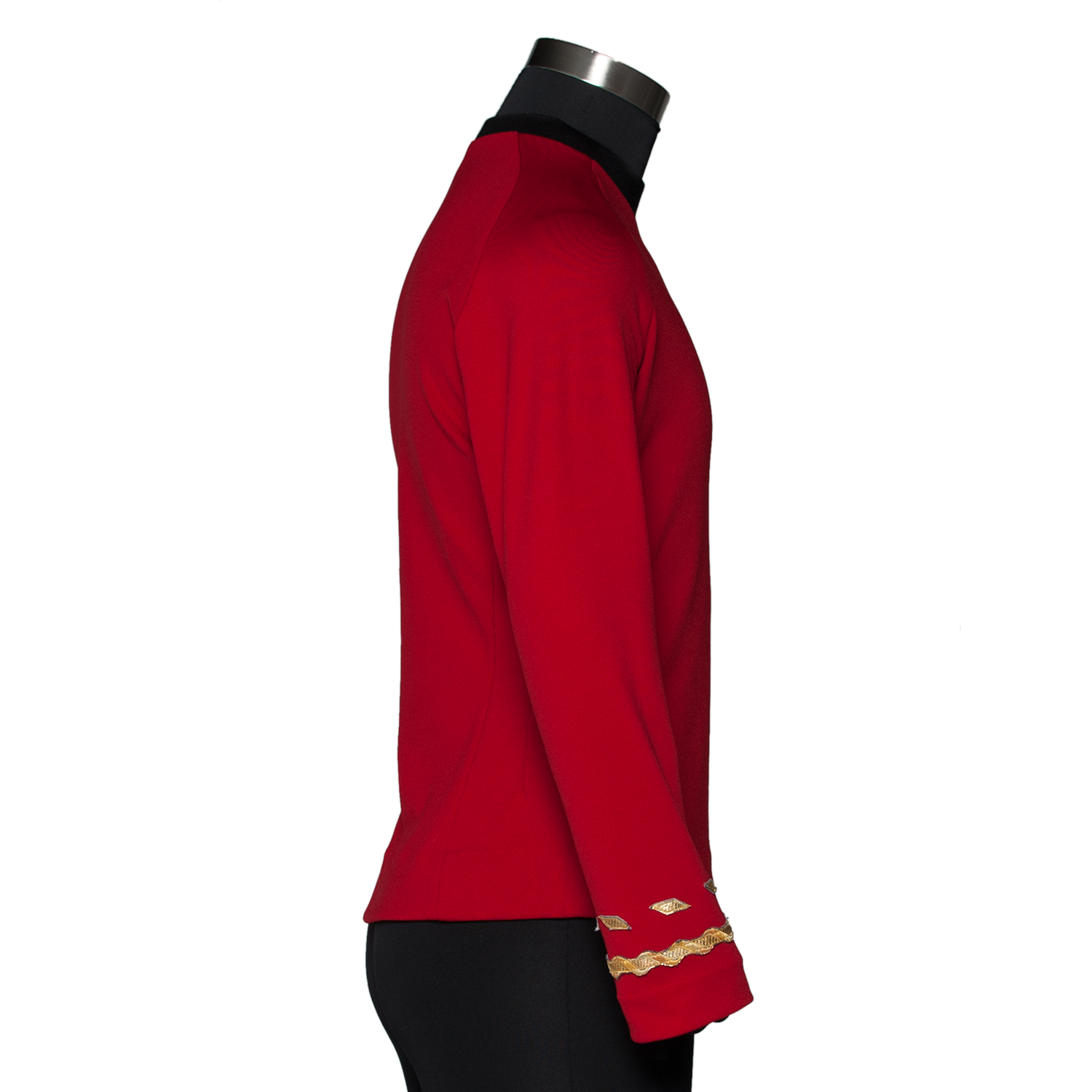 Faithful replica of the Starfleet duty uniform tunic worn in the final season of Star Trek™: The Original Series. Utilizing patterns from screen-used costumes, these later season style of tunics complete the look as a Starfleet services division officer. Tunics feature character-specific Lieutenant Commander braid at lower arm, hidden zipper at shoulder, and scarlet red department color.