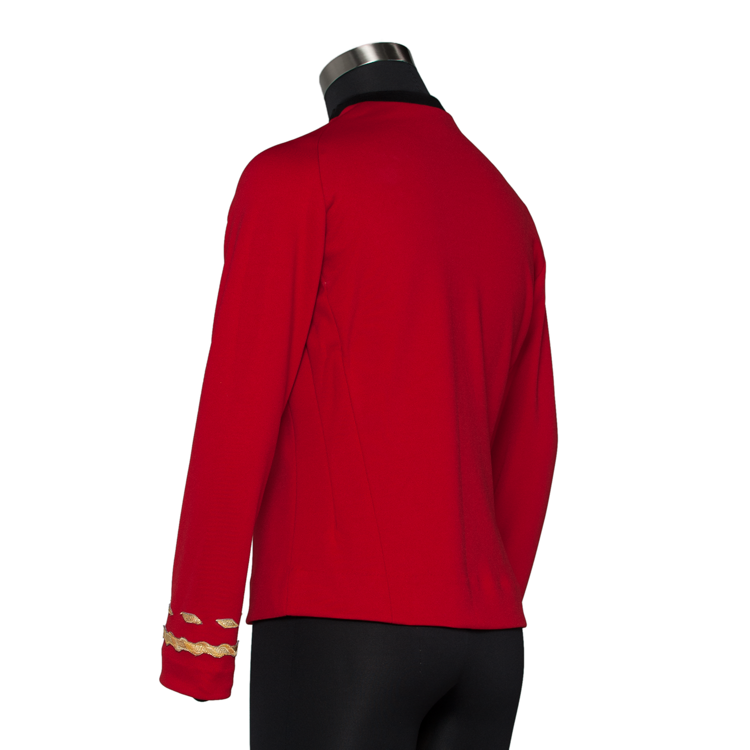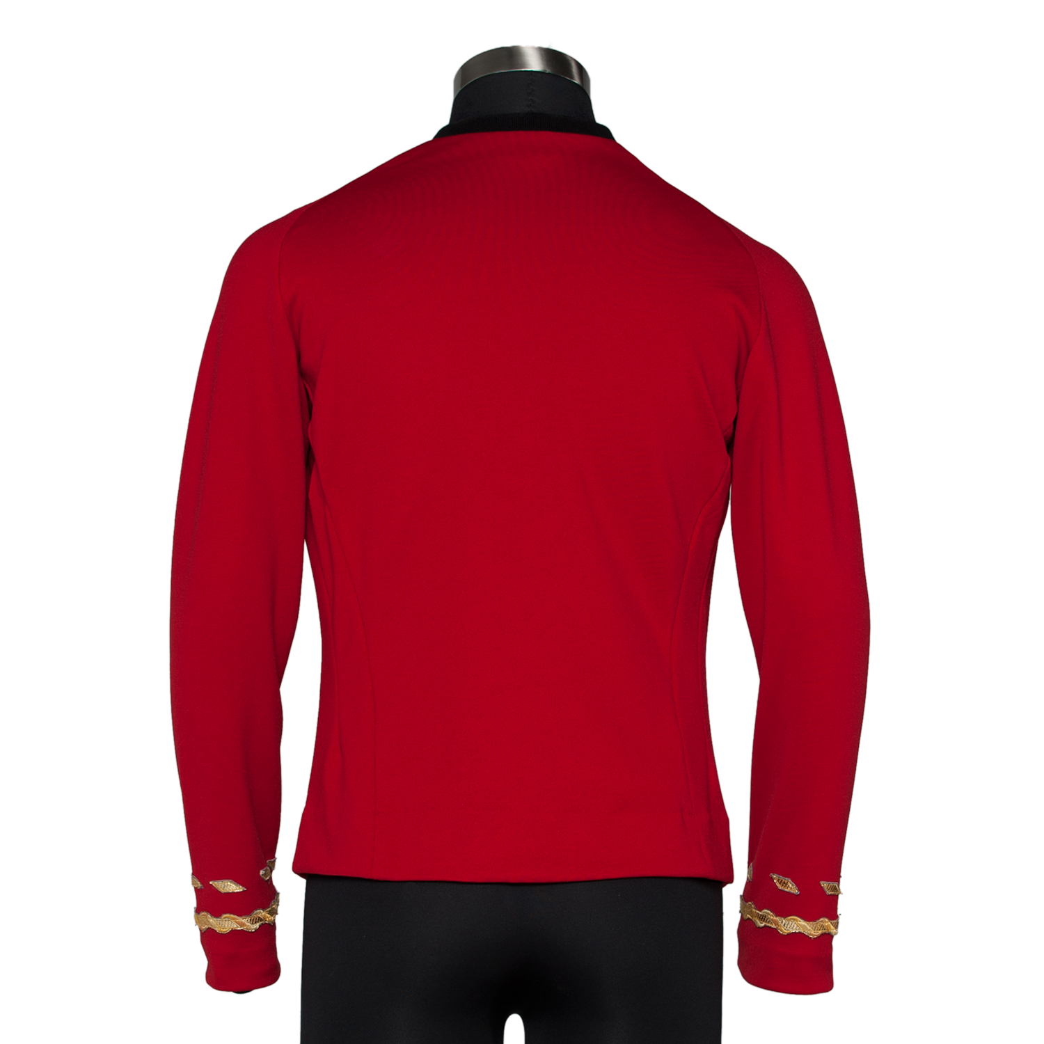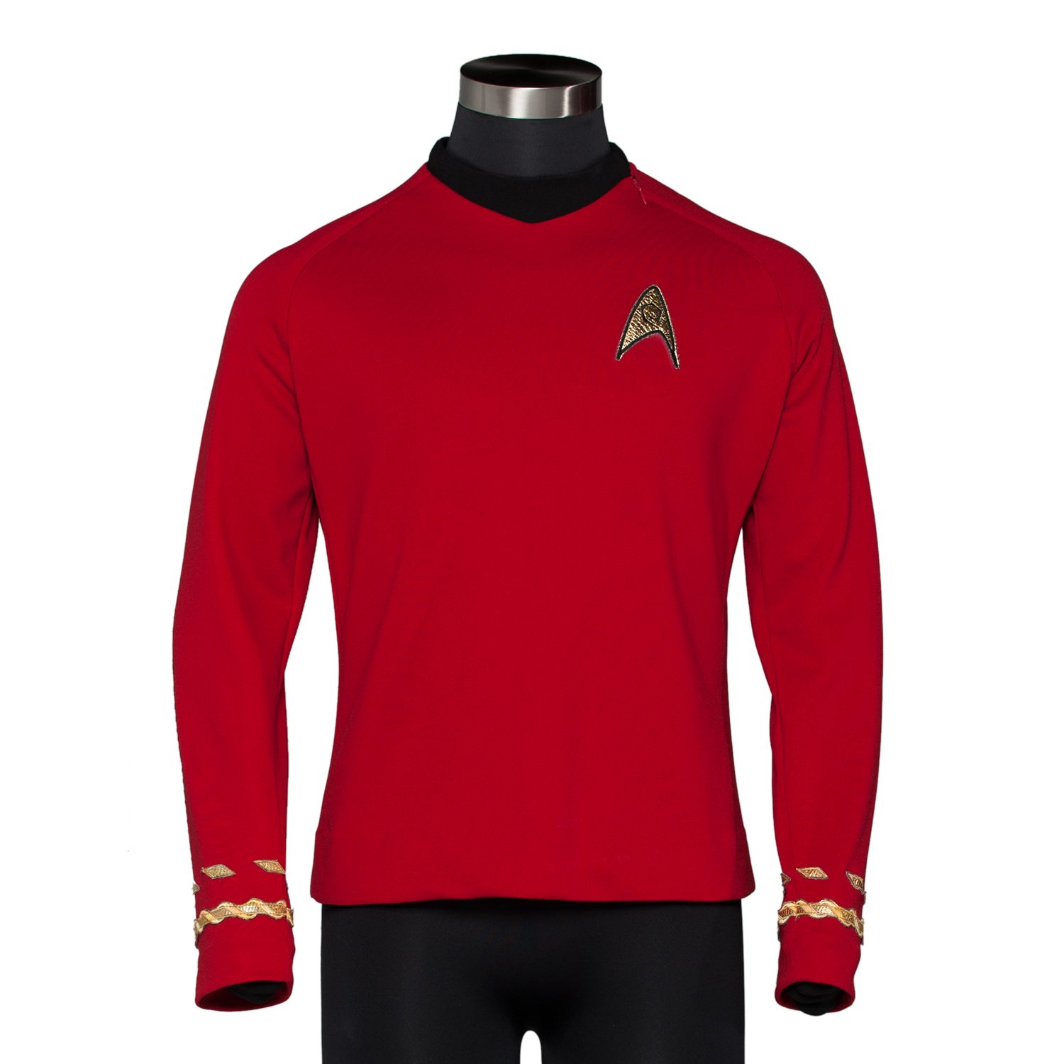 Faithful replica of the Starfleet duty uniform tunic worn in the final season of Star Trek™: The Original Series. Utilizing patterns from screen-used costumes, these later season style of tunics complete the look as a Starfleet services division officer. Tunics feature character-specific Lieutenant Commander braid at lower arm, hidden zipper at shoulder, and scarlet red department color.
